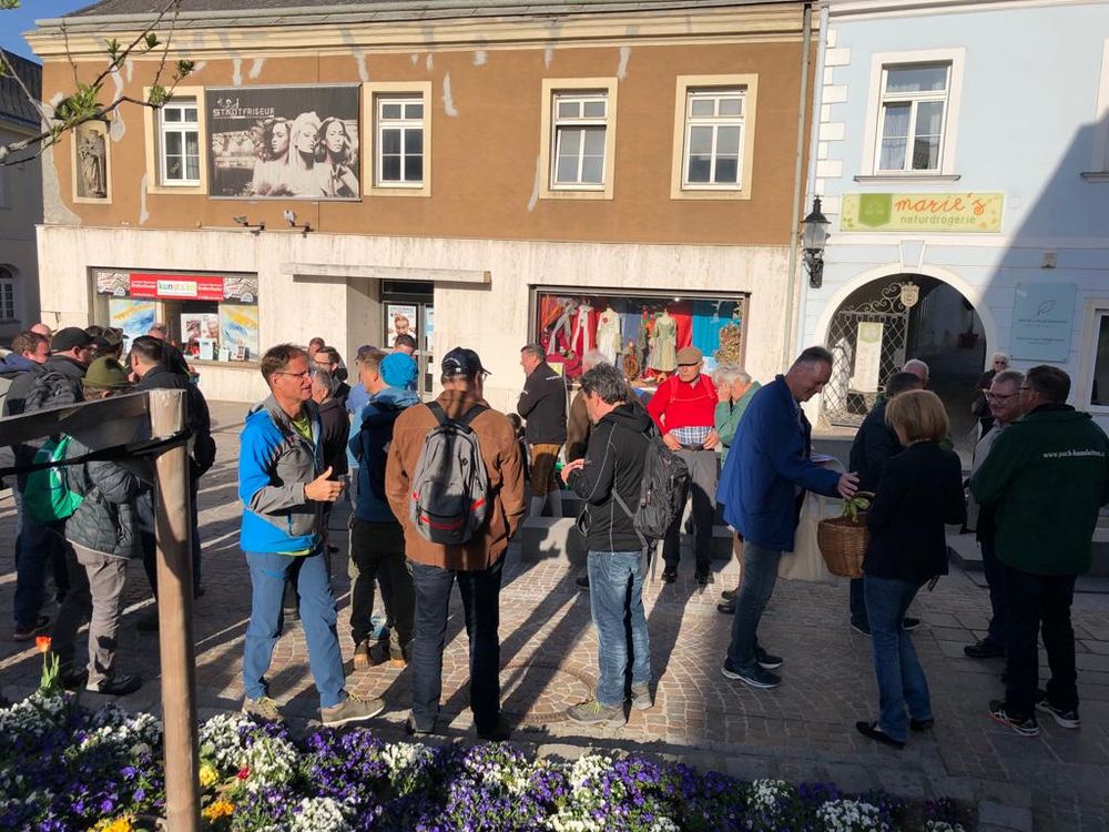 Wie immer - pünktlich beim 8:30 Uhr Glockenschlag der Stockerauer Kirchturmuhr wurde bei ca. 13 °C bei der Kirchenstiege